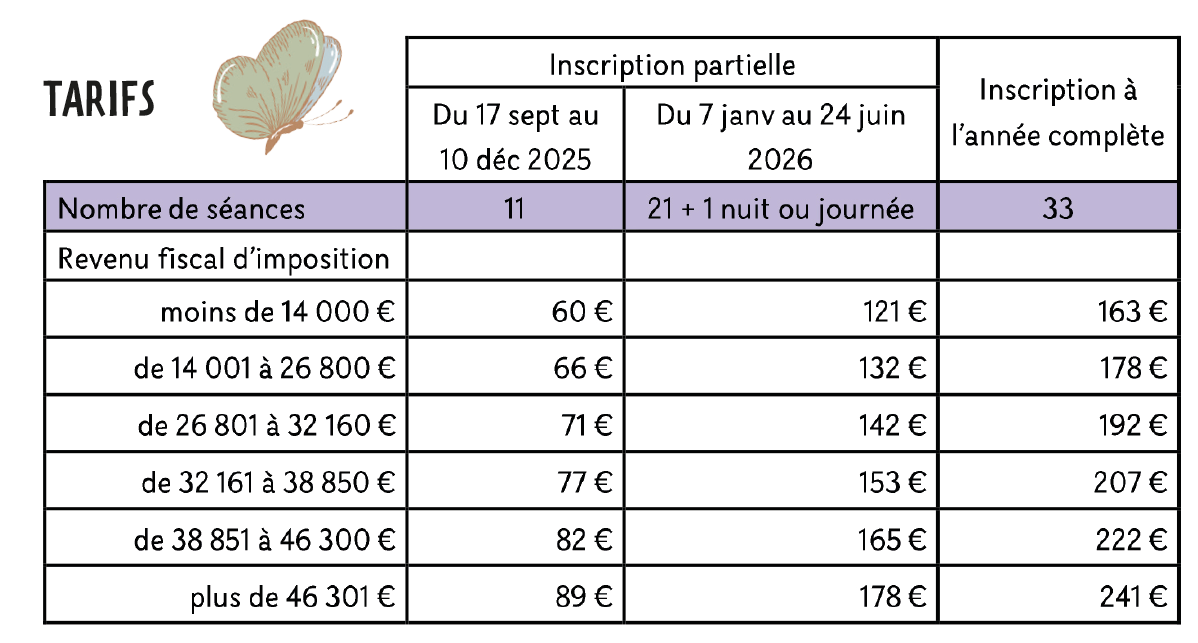 L'inscription au club nature est possible toute l'année tant qu'il reste des places. Il est possible d'y inscrire votre enfant pour toute l'année, mais aussi partiellement (du 17 septembre au 10 décembre 2025 ou du 7 janvier au 25 juin 2026).
