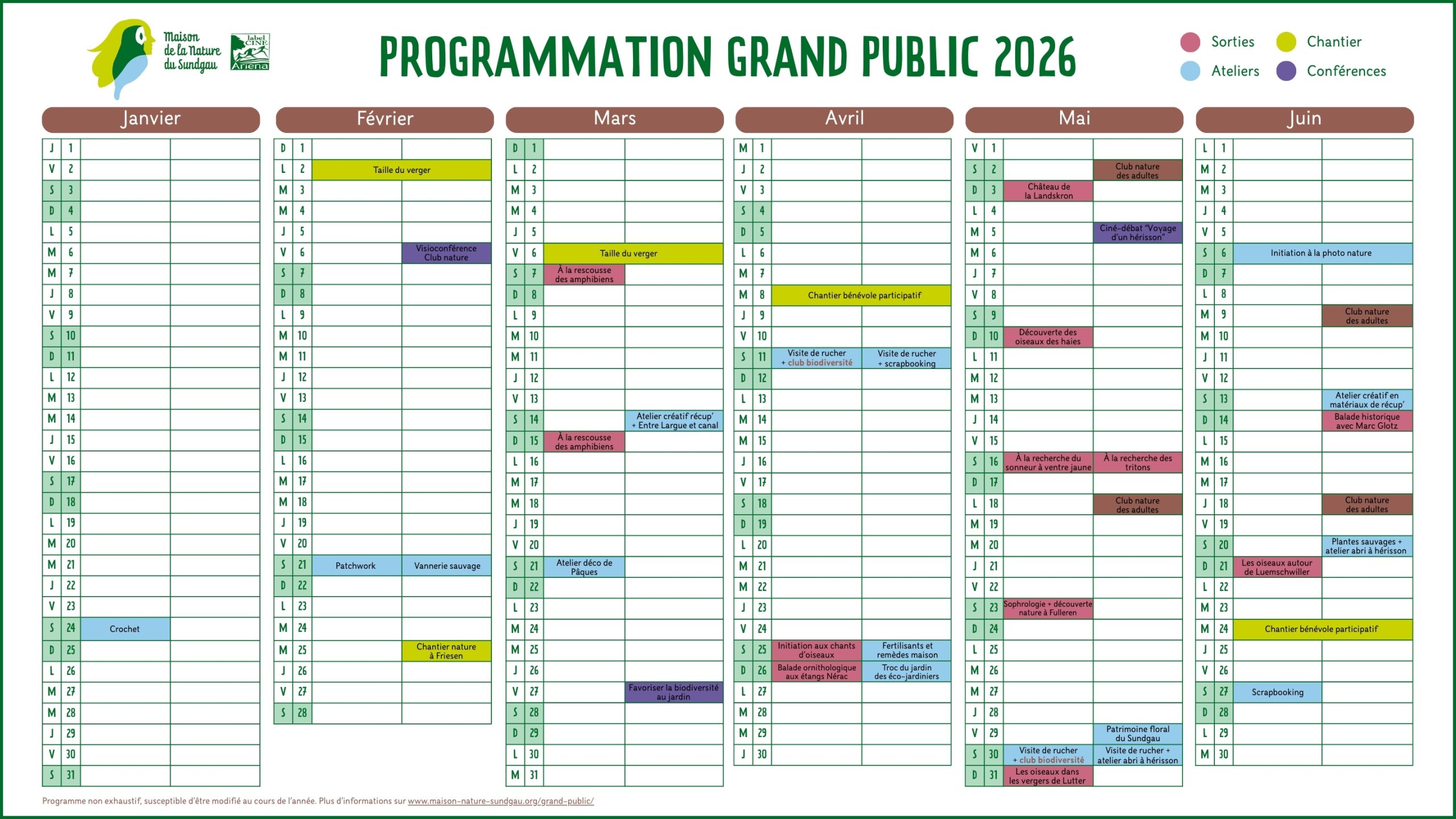 Besoin d'avoir plus de visibilité sur ce que propose la Maison de la Nature du Sungau en sorties, ateliers ou encore conférences cette année ? Voici un calendrier des évènements sur la période janvier à juin 2026 !
