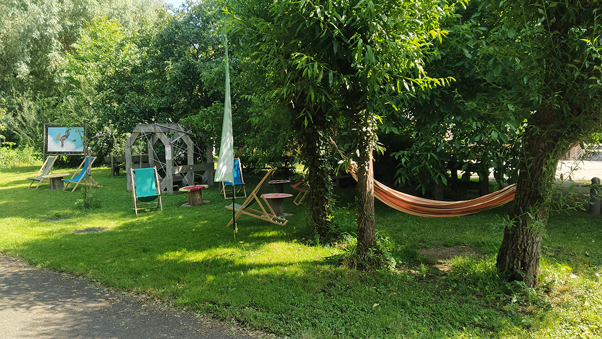 À l'ombre du tilleul ou sous le beau soleil estival (mais aussi sous la pluie, tout est permis !), venez déguster nos boissons fraîches bio ou prendre un petit café à deux pas de la piste cyclable ! Visitez l'exposition gratuite dans l'Étrange Grange, amusez-vous avec nos jeux de pistes pour petits et grands et tentez de gagnez une petite récompense. Prenez le temps de vous balader sur notre terrain pour découvrir les photos animalières grand format d'Olivier Halm. De quoi passer un agréable moment dans la nature…