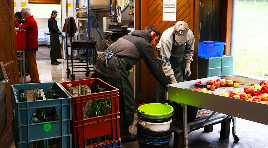 Voilà l’automne, et les kilos de pommes qui s’accumulent dans votre verger ! Comment les conserver toute l’année ? Lorsque vous aurez épuisé toutes vos recettes de pâtisseries, de confitures et de bocaux, la Maison de la Nature du Sundgau vous propose de venir faire votre propre jus de fruits dans son pressoir équipé d’une chaîne de pasteurisation. Dans une ambiance conviviale, vous produirez des litres de jus pasteurisé que vous pourrez conserver plusieurs mois ! Rien de plus agréable qu’un verre du jus de vos pommes !