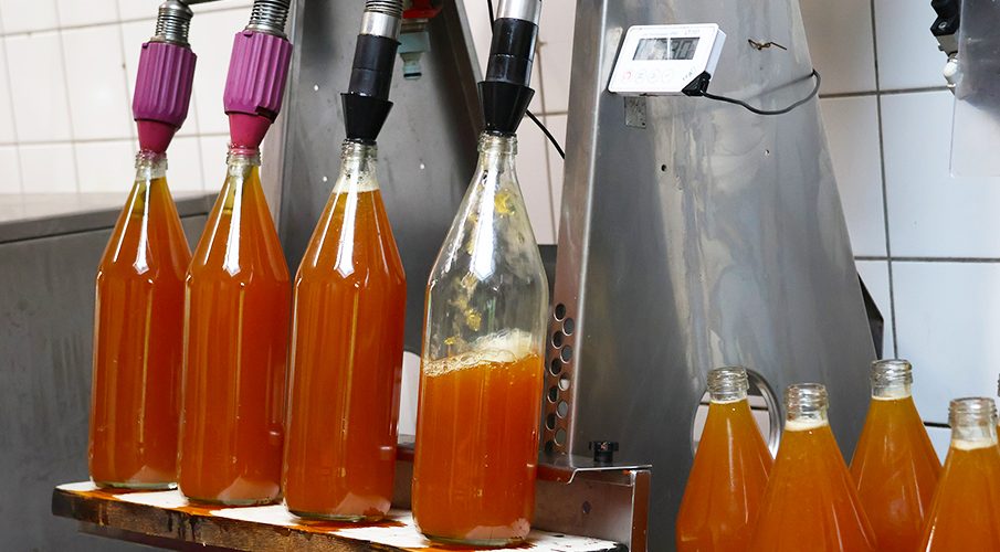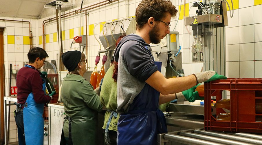 Des bénévoles vous accueillent sur l’installation, mais vous participez au pressage des fruits et à leur mise en bouteille. Il est conseillé de venir à 2 personnes pour un travail plus efficace. En ce qui concerne les bouteilles, nous vous les vendons la 1ère année, et vous pouvez ensuite les réutiliser les années suivantes.